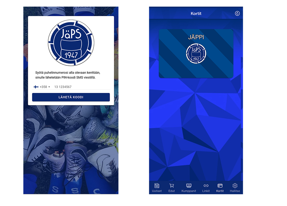 JäPS eli Järvenpään Palloseura on ottanut käyttöön MOBIILIKORTTI -alustaratkaisun ja todellakin tuonut oman tyylikkään ilmeensä sovellukseen. JäPS halusi tarjota jäsenilleen edistyksellisen tavan olla mukana seurassaan, ja samalla viedä yhteistyön kumppaniensa kanssa seuraavalle tasolle.